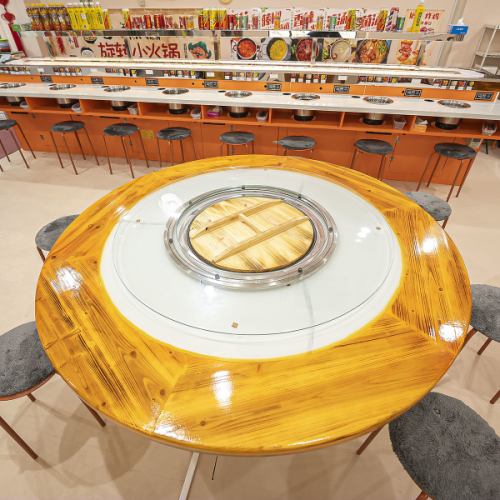 全席がゆったり配置され、食事に集中しやすい落ち着いた空気感を演出。ランチの利用はもちろん、ディナーでは回転火鍋や円卓鍋を囲みながら長時間でも快適に過ごせます。幅広いシーンで使いやすいよう工夫された空間です。